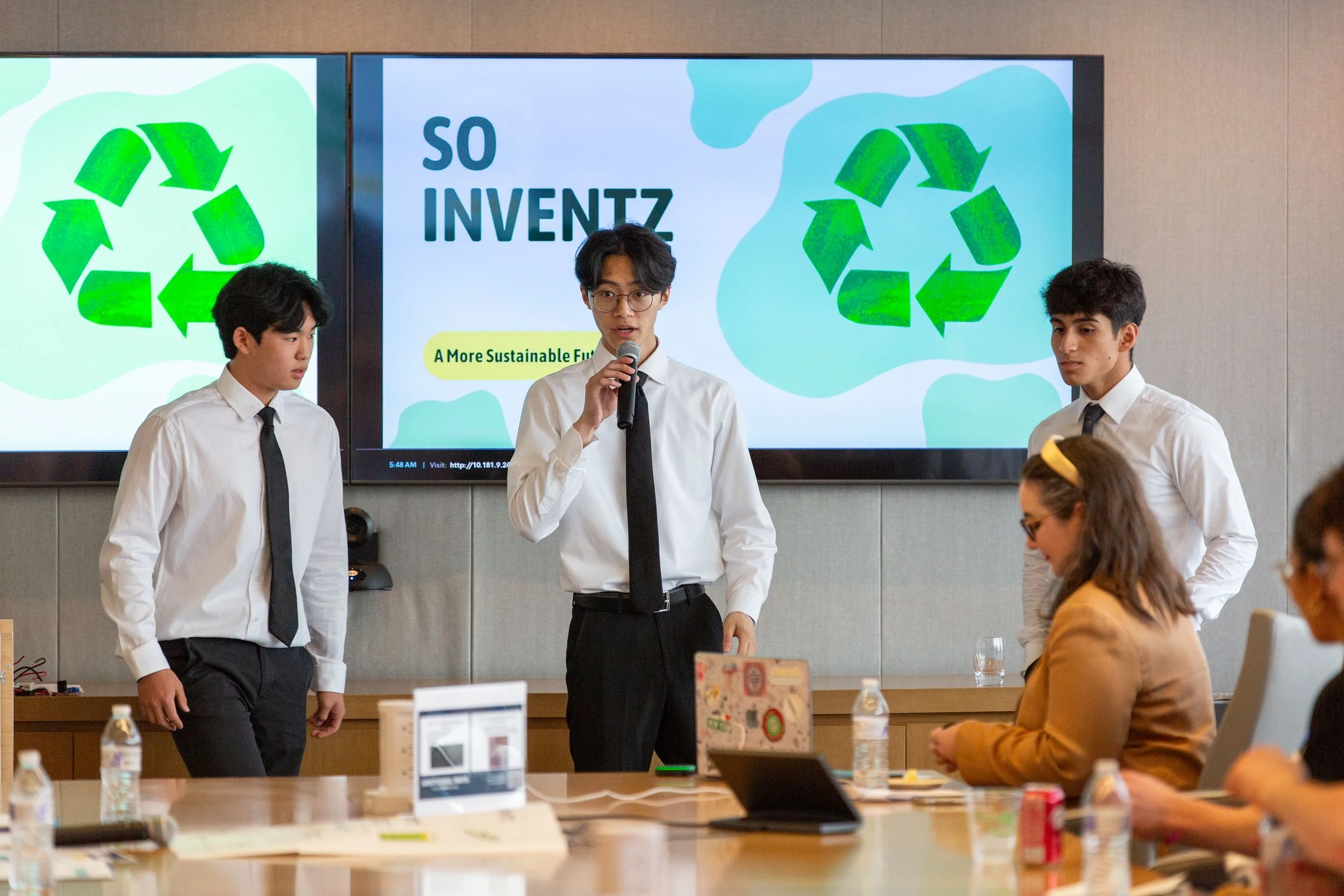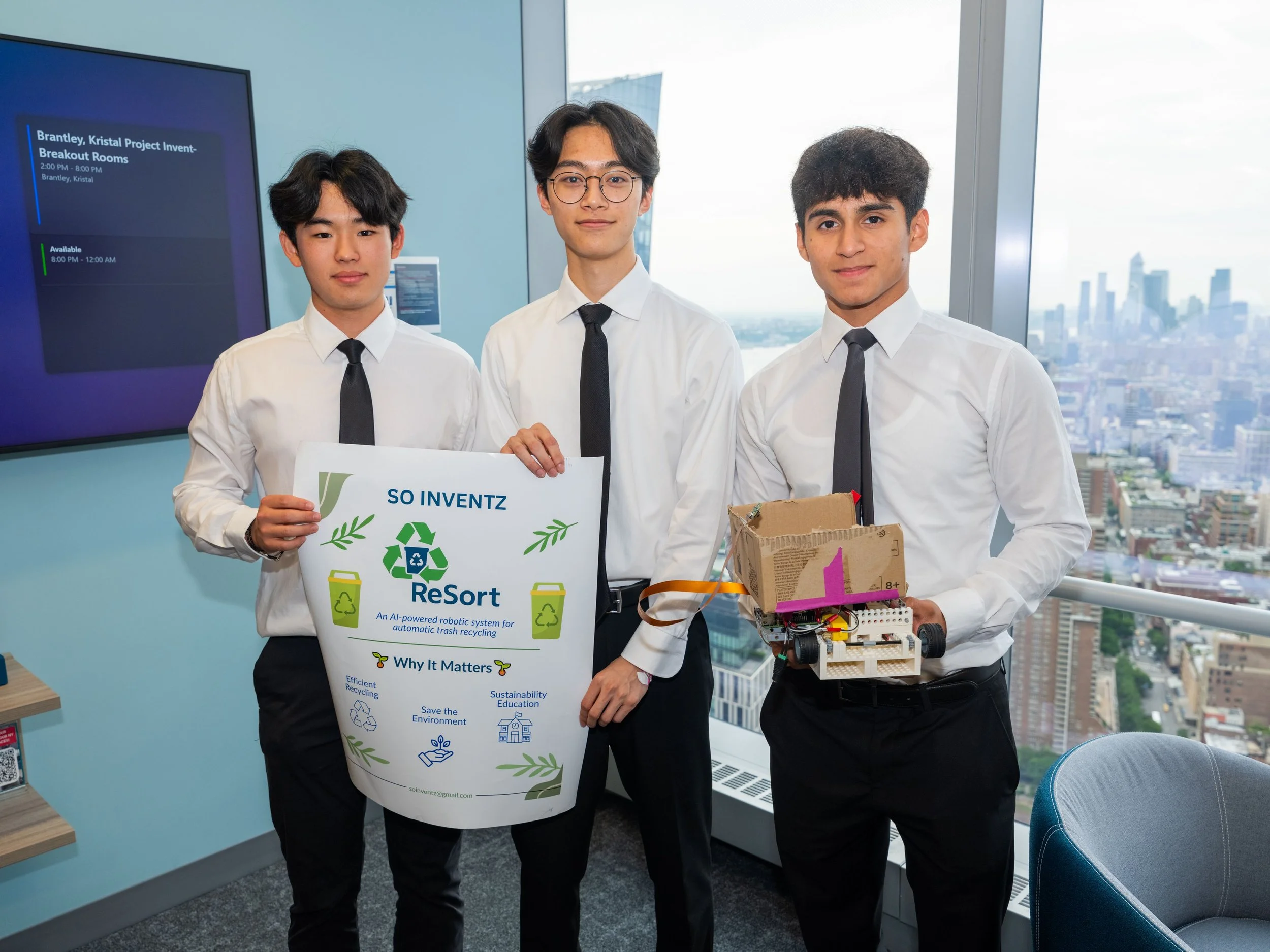 Team SO INVENTZ! A Team from New York that focused their invention on community design in their mission to clean the planet and normalize recycling. Their invention was the ReSort that uses AI to detect trash and its materials to sort it into the correct trash bin.