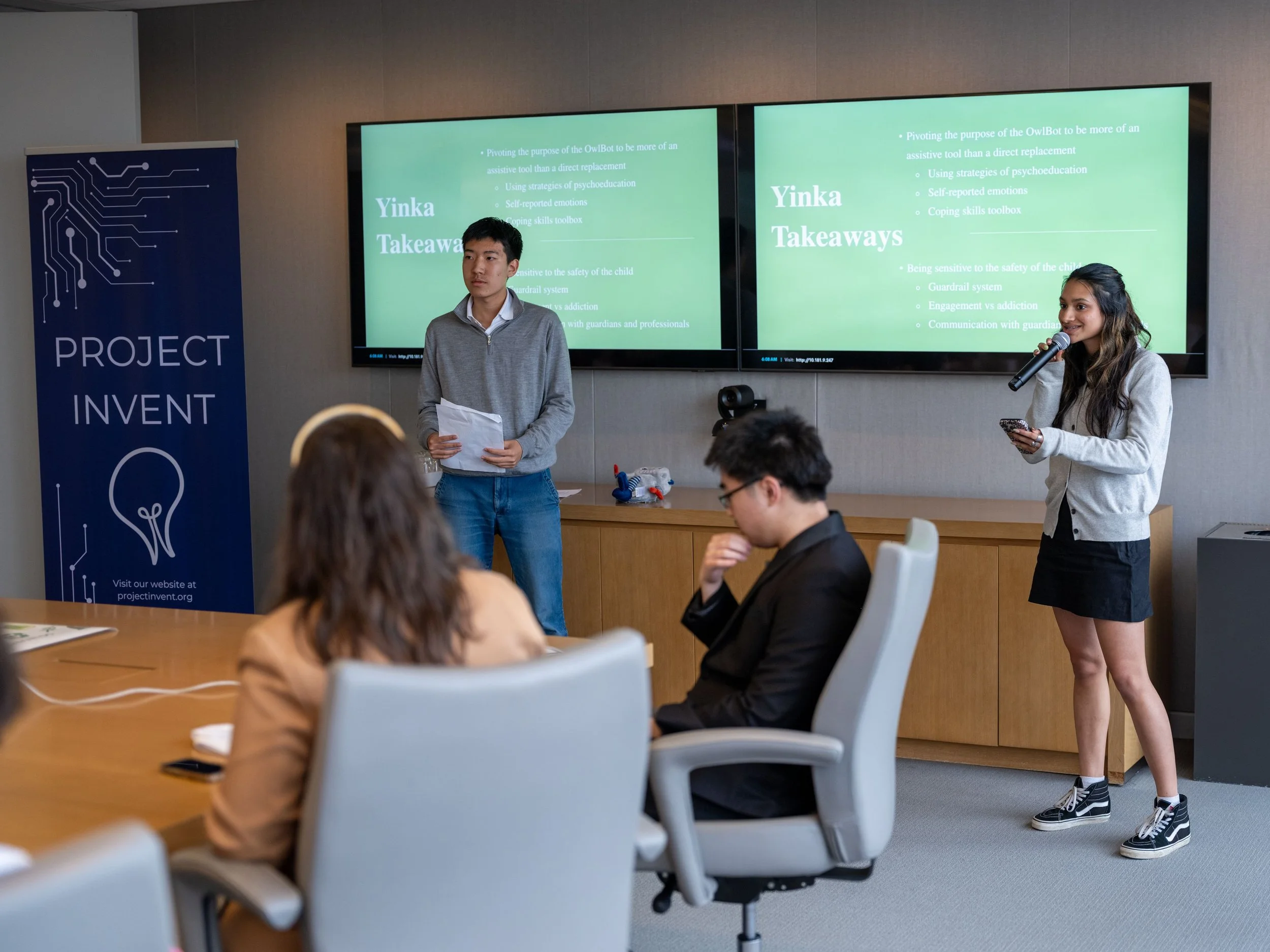 Over the school year, our student inventor teams work tirelessly to identify real community needs, design innovative solutions, and bring their ideas to life. At Demo Day, they pitch their prototypes to a panel of 4–5 STEM industry professionals and showcase their journey from first spark of inspiration to fully functioning prototype.