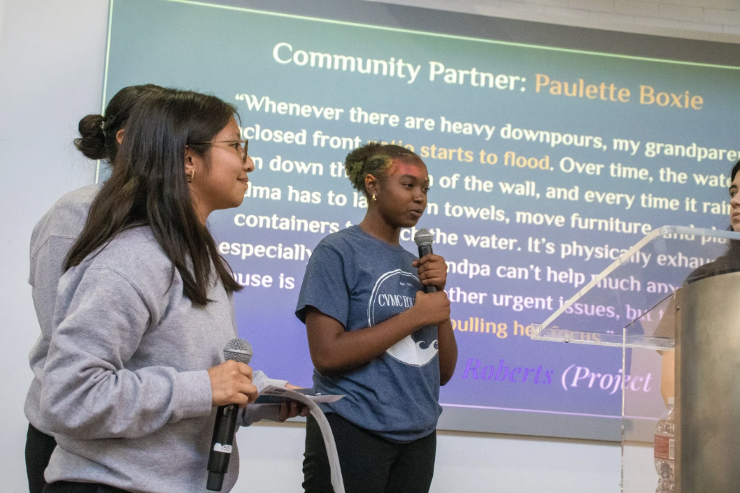 Their Community Partner was Paulette Boxie who’s experienced challenges with her basement flooding while also expressing her grandparents face the same struggle with their front patio. She voiced her need and concern for an affordable way to prevent flooding.